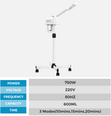 Rolling Base with Wheels: This facial steamer comes with a stable, mobile rolling base, which makes it easy to move around the room or salon. The wheels ensure smooth mobility, which is perfect for any salon or beauty treatment setup.