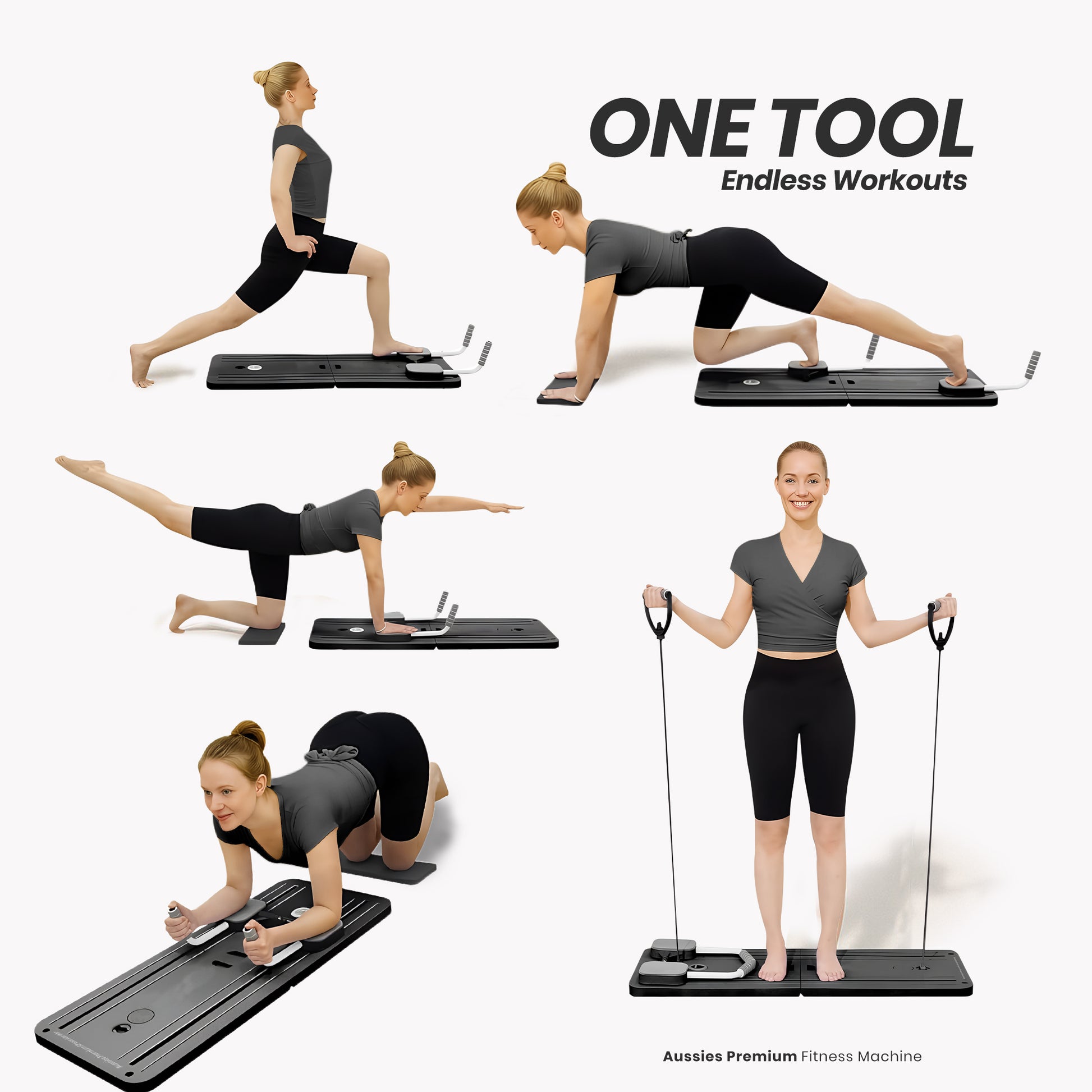 ✅ 8-in-1 Versatility: Combines Pilates bar, resistance bands, push-up board, slide board, and more
