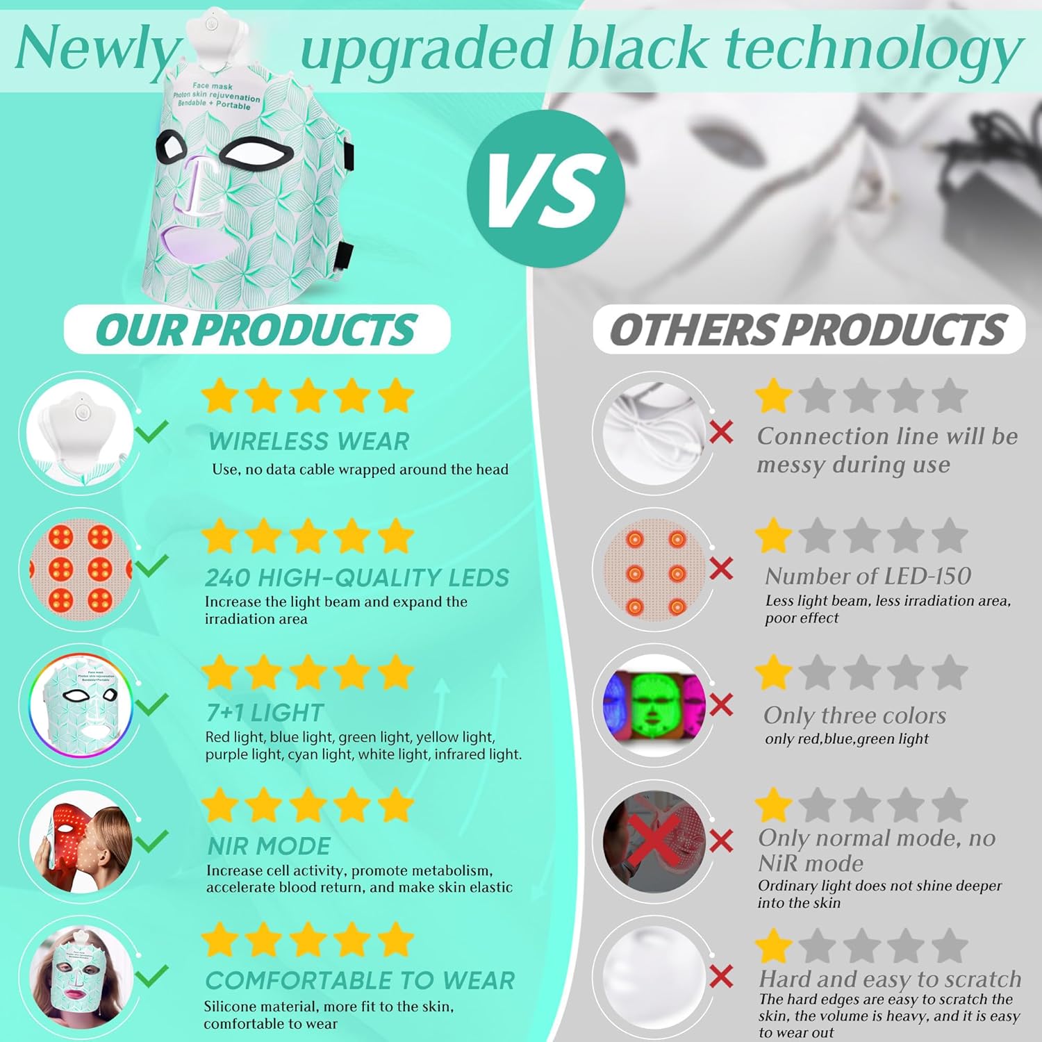 ✅ Soft Silicone | 240 LED Beads | Wireless & Rechargeable | Anti-Aging | Acne Care | Portable Beauty Mask